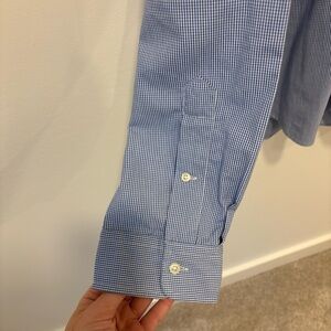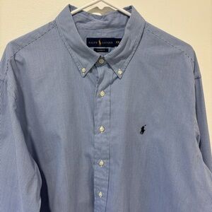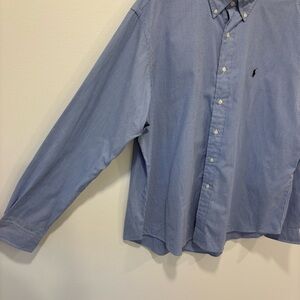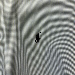 Ralph Lauren Men’s Collared Dress Shirt Button Down Blue White Micro Check Print