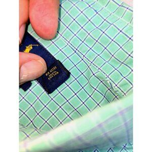 Ralph Lauren Mens Custom Fit Green Check Dress Shirt Small
