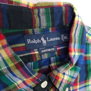 Ralph Lauren Mens Custom Fit Plaid Shirt XL Multicolor 100% Cotton ButtonDown LS
