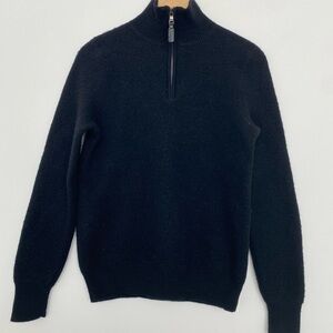 Stay warm and stylish with this classic black half-zip sweater. Perfect for any occasion.