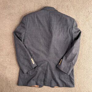 Ralph Lauren Mens Houndstooth Blazer 40R Wool Gray Blue Checkered 2 Button Prep