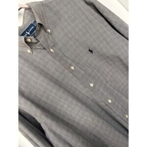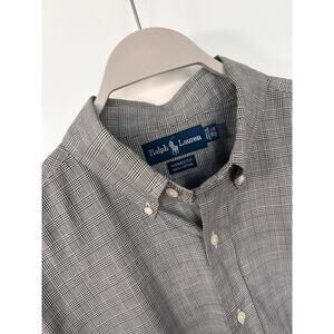 Ralph Lauren Men's Houndstooth Yarmouth Button-Down Shirt Gray Size 16.5 34/35
