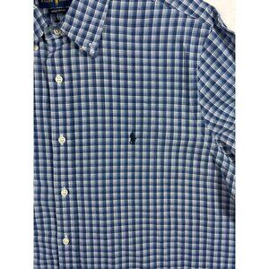 This Ralph Lauren shirt features a classic indigo plaid design, ideal for casual or semi-formal settings. The button-down collar and short sleeves offer a relaxed fit for warm weather, while the iconic Ralph Lauren logo adds a touch of sophistication.