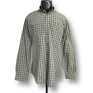 Ralph Lauren Men's L Custom Fit Brown Blue Plaid Long Sleeve Button Down Shirt