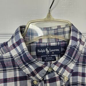 Ralph Lauren Men's Large Blake Red, White and Blue Plaid Button Down Shirt