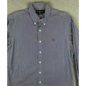 Ralph Lauren Mens Large Long Sleeve Button Down Shirt Purple Striped Custom Fit