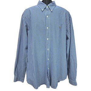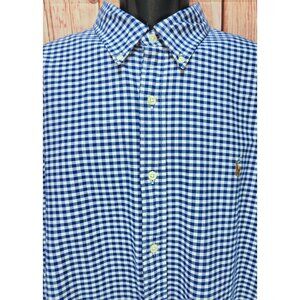 Ralph Lauren Mens Long Sleeve Cotton Blue & White Gingham Button-Down Shirt XXL