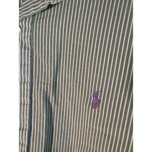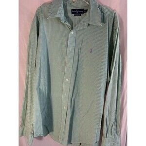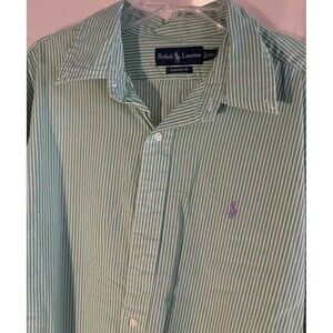 Ralph Lauren Mens Long Sleeve Shirt XXL Green White Stripes Button Down Classic