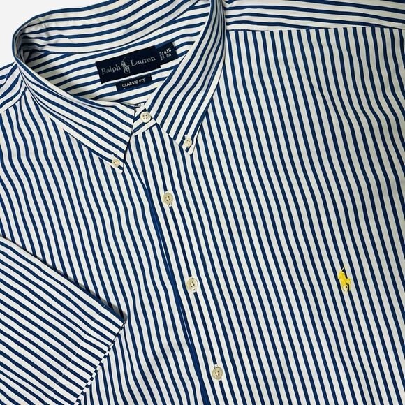 Ralph Lauren Mens M Shirt Blue White Pin Stripes Long Sleeve Button Down Logo. Condition is Pre-owned - Excellent. Shipped with USPS Ground Advantage.
