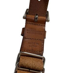 Ralph Lauren Men’s Metal and Leather Belt Size Large Like New Measures 41 inches long and 1 1/2 inches wide, like new condition