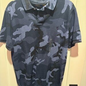 Stylish navy camouflage polo by Ralph Lauren. Perfect for casual outings. Classic fit with a modern edge.