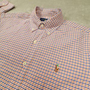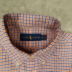 Ralph Lauren Men's Orange Blue Check Long Sleeve Button Up Shirt size Small