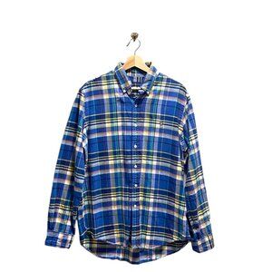 Ralph Lauren Plaid Button Down Shirt Blue Size L Preppy Classic Coastal Academia