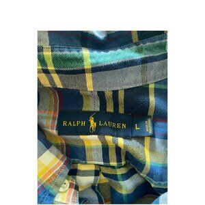 Ralph Lauren Mens Plaid Button Down Shirt Blue Size L Preppy Classic Academia