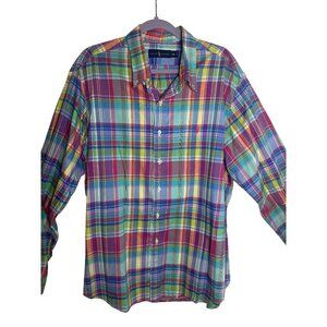 This Ralph Lauren plaid shirt offers vibrant colors and a classic fit. Crafted from cotton, it features a button-down style suitable for casual outings.