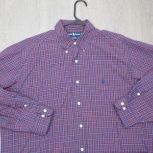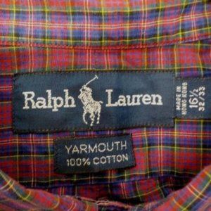 Ralph Lauren Mens Plaid Dress Shirt Yarmouth Cotton Button Down Pony Logo Top