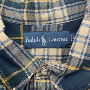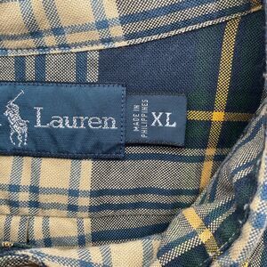 Ralph Lauren Men's Plaid Long Sleeve Shirt Button Down XL Yellow/Dk Green
