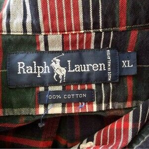 Ralph Lauren Men's Red Green White Plaid Cotton Button Down Shirt Size XL Preppy