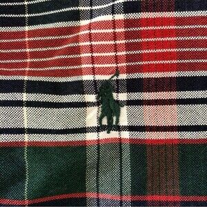 Ralph Lauren Men's Red Green White Plaid Cotton Button Down Shirt Preppy