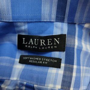 Ralph Lauren Mens S Shirt Black Label Button Down Blue Plaid Soft Washed Stretch