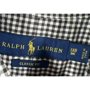 Ralph Lauren Mens Shirt 1XB Big Brown White Micro Check Blue Pony Long Sleeves