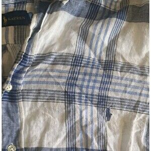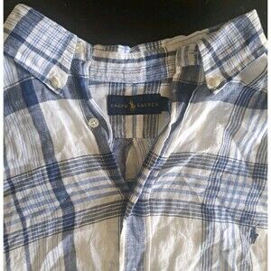 Ralph Lauren mens long sleeve shirt, size 2XL, featuring a blue and white plaid pattern. Casual button-up style suitable for everyday wear, work, or social events.