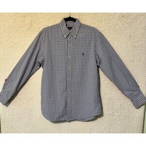 Ralph Lauren Mens Shirt Button Up Plaid Size M Blue Pony 100% Cotton