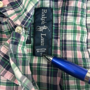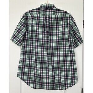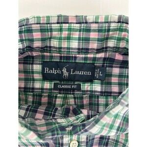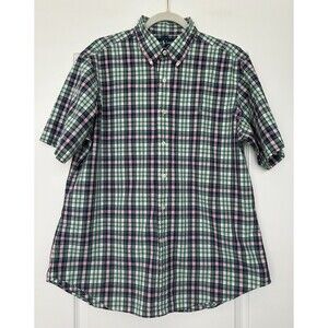 Ralph Lauren Mens Shirt Large Short Sleeve Green Pink Plaid Colorful Cotton Vtg.
