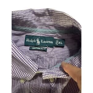Ralph Lauren Mens Shirt Purple Check Custom Fit Small Pony 100% Cotton Size XL