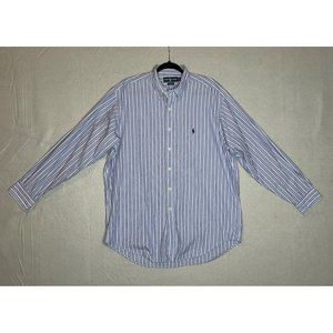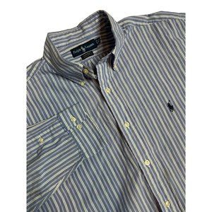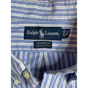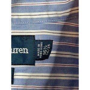 Ralph Lauren Mens Size 16.5 Yarmouth Blue Stipe Long Sleeve Button Down Shirt
