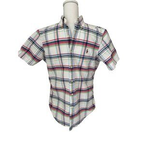Ralph Lauren Mens Size Small Cotton Twill Plaid Short Sleeve Preppy Button Down