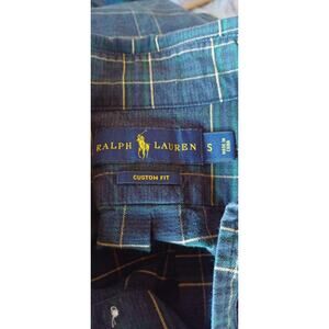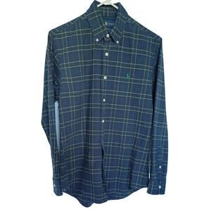 Ralph Lauren Men's Small Plaid Button Down Shirt Custom Fit Navy Yellow Preppy