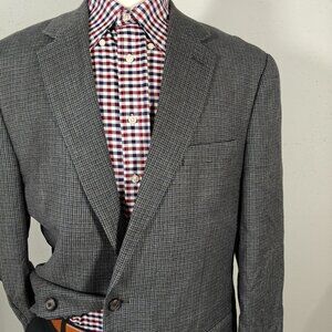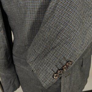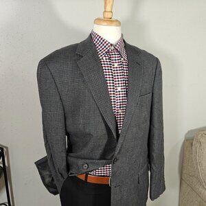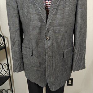 Ralph Lauren Mens Sport Coat Blazer Houndstooth Gray Silk Wool Cashmere Size 44L