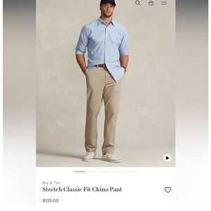 Ralph Lauren Men’s Stretch Classic Fit Chino Flat Front Tan Pants Size 36 x 32