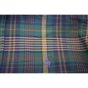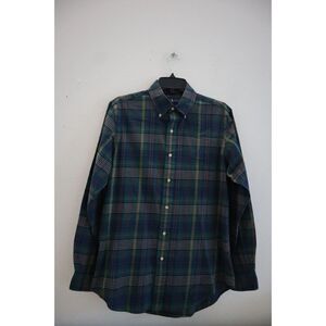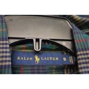 Ralph Lauren Men's Sz S Green/Navy Plaid Custom Fit Button-Up Poplin Shirt