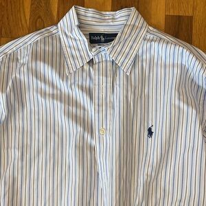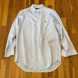 Ralph Lauren Men’s White and Blue Striped Button Down Shirt Size 16