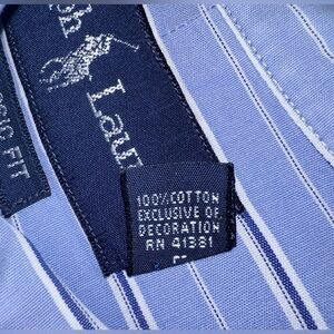 Ralph Lauren Mens XL Bengal Long Sleeve Blue White Striped Classic Button Down