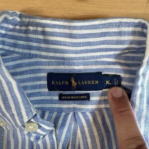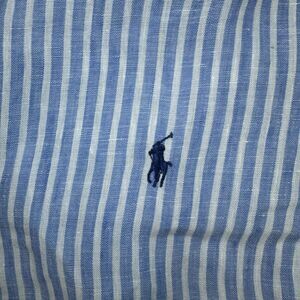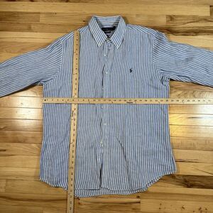 Ralph Lauren Men's XL Blue/White Stripes Ocean Wash Linen Long Sleeve Button Up