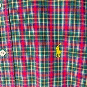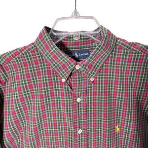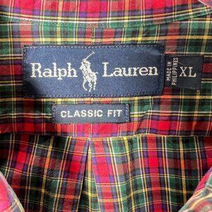 Ralph Lauren Mens XL Classic Fit Red Green Plaid Button-Down Shirt Long Sleeve