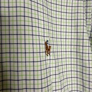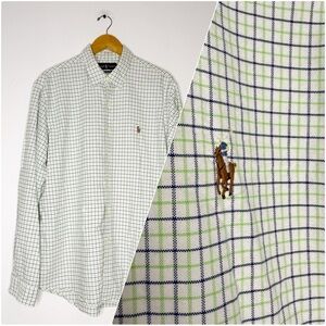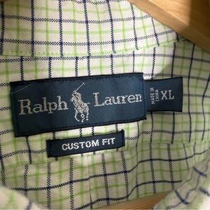 Ralph Lauren Men’s XL Custom Fit Button Down Shirt Green Navy White Check