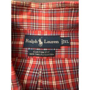Ralph Lauren Mens XL Red Plaid Button-Down Shirt Custom Fit 100% Cotton Classic