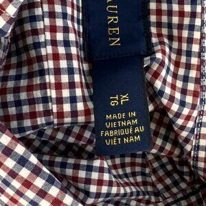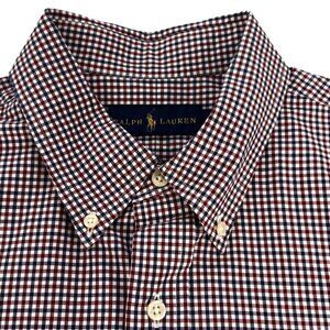 Ralph Lauren Mens Extra Large Shirt Red Blue White Check Button Down Long Sleeve