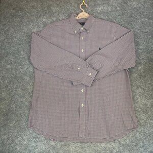 Ralph Lauren Mens XL Red Shirt Blue White Check Button Down Long Sleeve Cotton