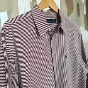 Ralph Lauren Men's XL Red Striped Button-Up Long-Sleeve Shirt Multicolor Casual