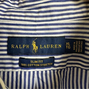 Ralph Lauren Mens XL Slim Fit 100% Cotton Stretch Button Down Shirt Striped Blue