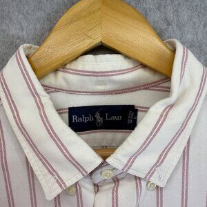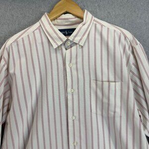Ralph Lauren Mens XL White & Red Striped Long Sleeve Button-Down Shirt