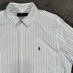 Ralph Lauren Men's XL White W/ Blue Stripes Button Down Long Sleeve Cotton Shirt