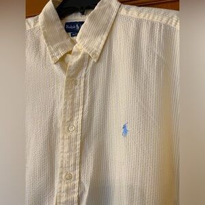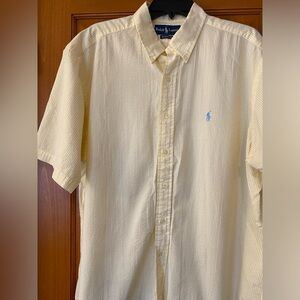 Ralph Lauren Men's XL Yellow Seersucker Button-Up Shirt Preppy Summer Beachy