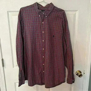 Ralph Lauren Men’s XXL 2XL Button Down Plaid Shirt Red with Gold and Green GUC
