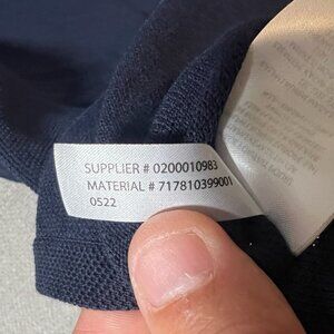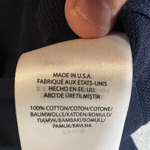 Minor initials embroidery on sleeve; chest to bottom = 29 inches; pit to pit = 26 inches.